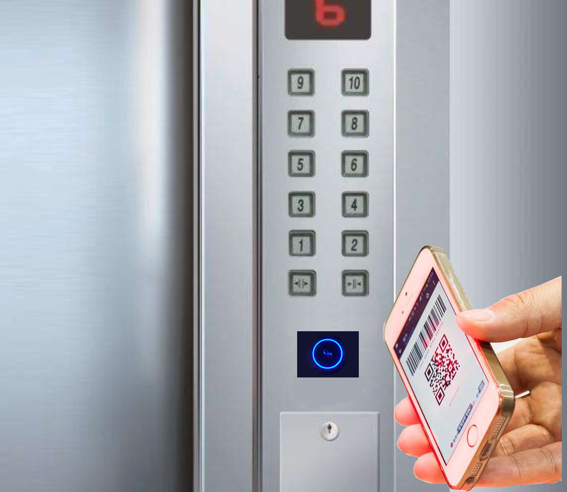 (3)訪客進(jìn)入電梯后,無需按鍵,將二維碼對準(zhǔn)電梯二維碼讀頭,倍加信梯控系統(tǒng)后自動點亮樓層按鈕乘梯;