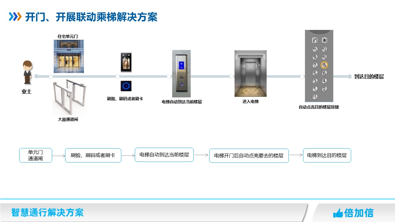 1、單元門或者通道閘上面,刷卡、刷碼、刷臉后,自動(dòng)呼叫電梯到當(dāng)前樓層;