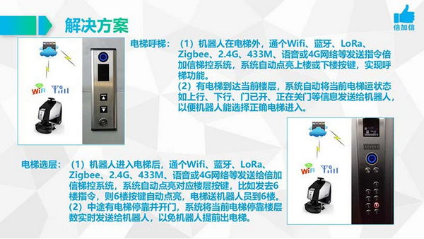 深圳市倍 加 信科技有限公司提供了一種全新機器人乘梯解決方案,該解決方案主要通過梯控云平臺與硬件的對接,從而實現(xiàn)多品類機器人和電梯的管理調(diào)度,幫助企業(yè)解決了機器人在建筑內(nèi)的自主乘梯的垂直交通智能化需求。