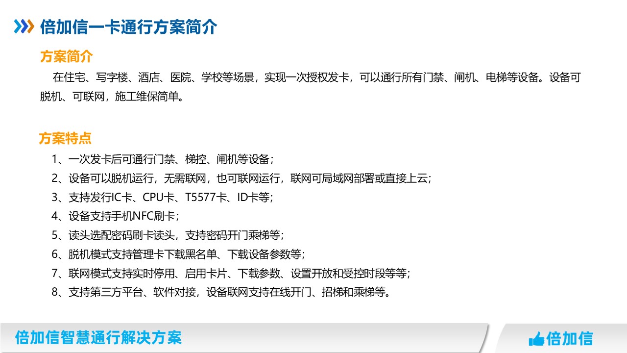 倍加信一卡通解決方案 一次發(fā)卡通行門禁、通道閘、梯控等系統(tǒng)