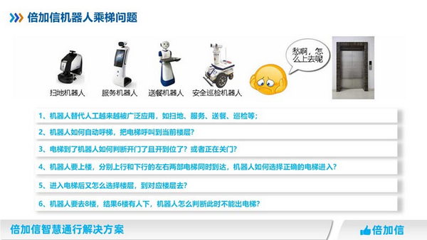 在一些高層建筑或是人流密集區(qū)域的電梯,由于使用頻繁,可能會(huì)存在電梯故障或事故的風(fēng)險(xiǎn)。而機(jī)器人倍加信梯控的作用,正是在這些情況下起到了保護(hù)和預(yù)警的作用。