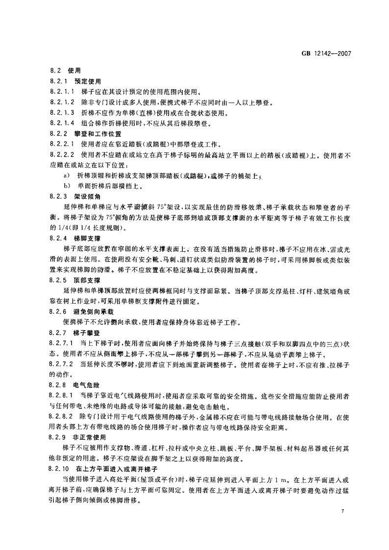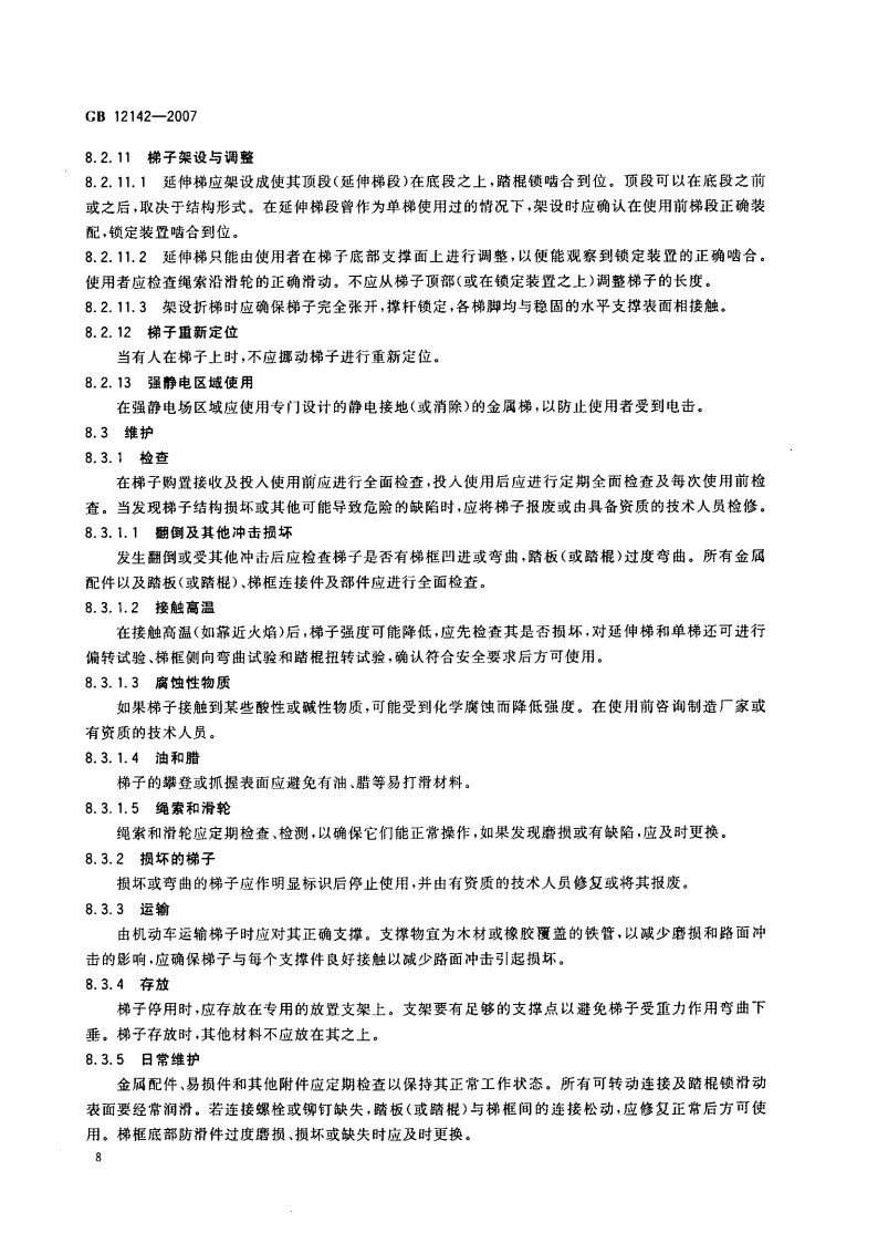 《便攜式金屬梯安全要求 GB 12142-2007》國家質(zhì)量監(jiān)督檢驗(yàn)檢疫總局、國家標(biāo)準(zhǔn)化管理委員會