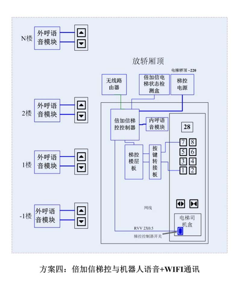(5)加裝倍加信梯控系統(tǒng),電梯原有設(shè)備都不會有任何變動,按鍵可以繼續(xù)使用,只是加了語音識別模塊自動觸發(fā)按鍵點(diǎn)亮,不會影響任何電梯原有線路、安全等;